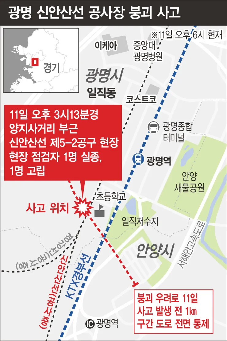 - 발생 위치: 경기도 광명시 일직동 신안산선 공사 현장