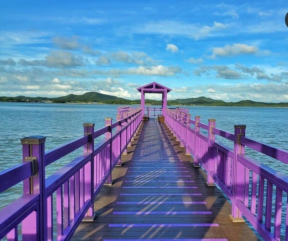 퍼플섬의 대표적인 랜드마크로, 반월도와 박지도를 연결하는 보라색 목조다리입니다. 바다 위를 걷는 듯한 기분을 느낄 수 있습니다. 다리 중앙에서 찍으면 아름다운 바다와 함께 멋진 인생샷을 완성할 수 있습니다!