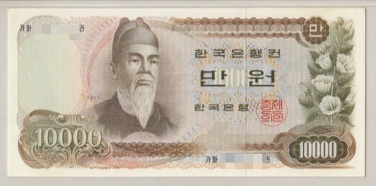 - 당시 이 1차 만 원권은 상당히 큰 고액이었으며, 1만 원권 2장이면 공무원 월급 정도였습니다.