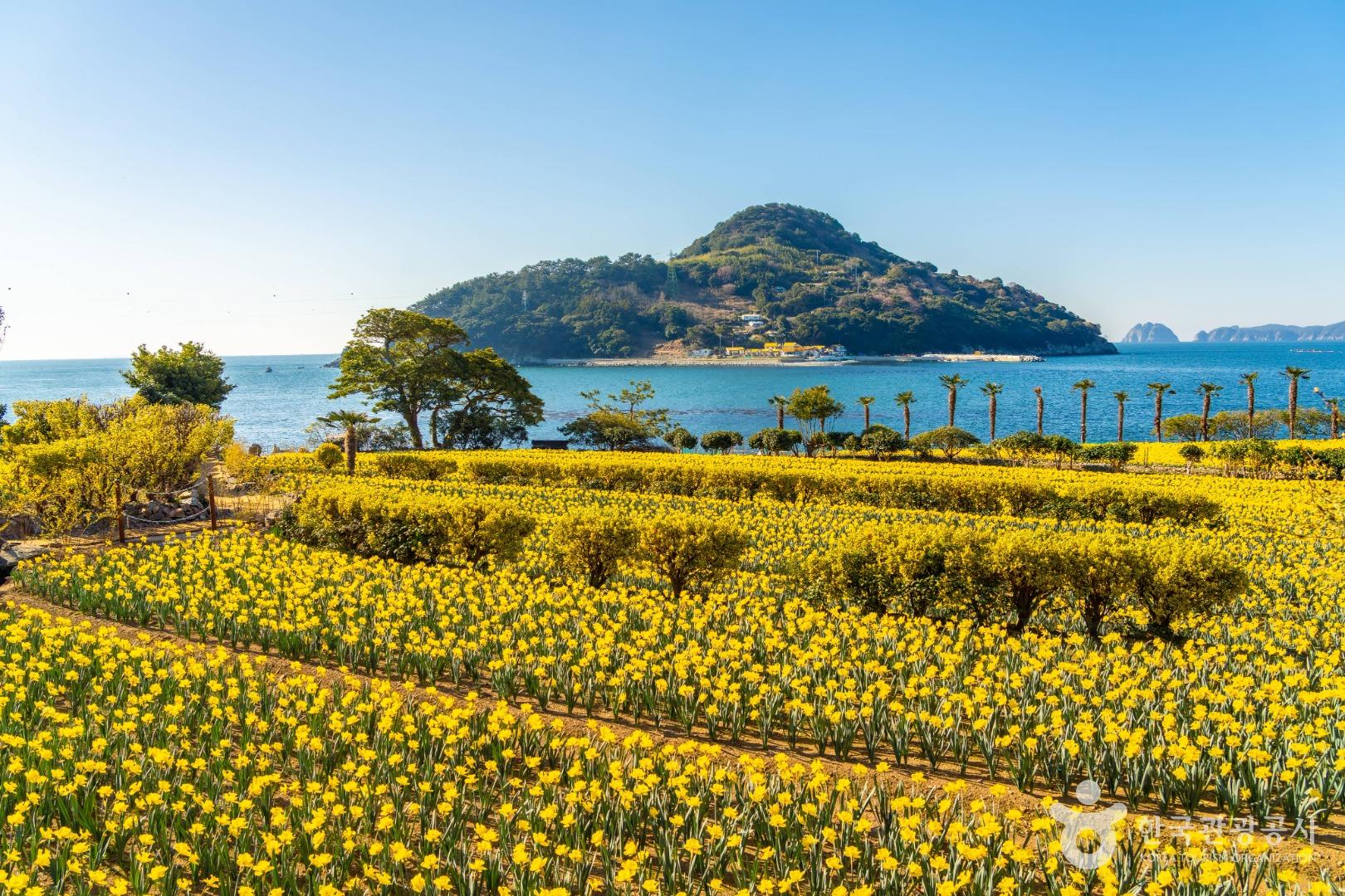 특히 이곳은 봄이 되면 수선화, 동백꽃, 매화, 벚꽃, 철쭉 등 수많은 꽃들이 만개하여 장관을 이루는데요, 그중에서도 수선화 물결은 압권입니다. 수천 송이의 수선화가 노란 물결을 이루며 언덕을 뒤덮는 모습은 보는 이의 마음까지 노랗게 물들입니다.