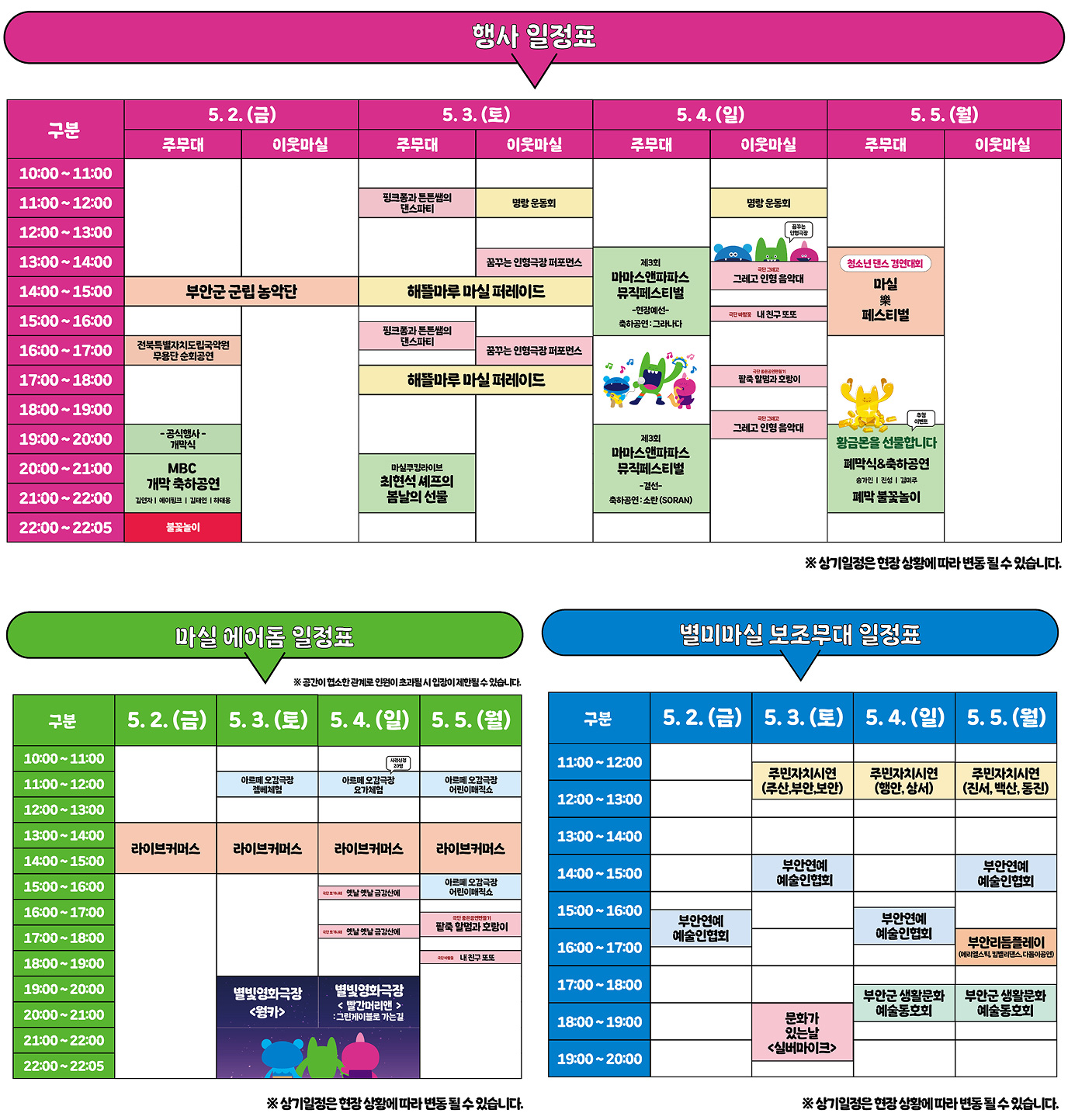 - 셔틀버스: 임시주차장 ↔ 축제장 셔틀버스 상시 운행