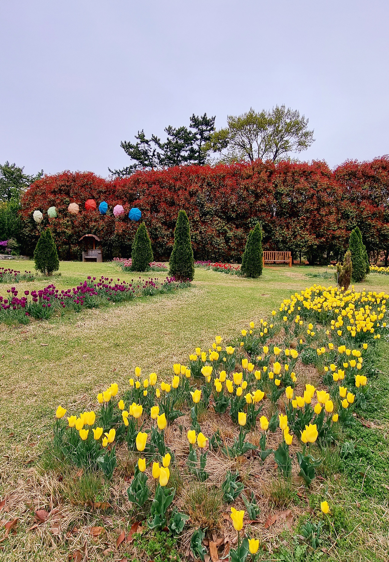 초입에서는 다양한 수생식물이 자라고 있는 정원과 연못이 펼쳐지며, 이곳의 고요한 물결과 생동감 넘치는 연초록 식물이 봄의 생명력을 보여줍니다. - 튤립 정원 – 철쭉 언덕