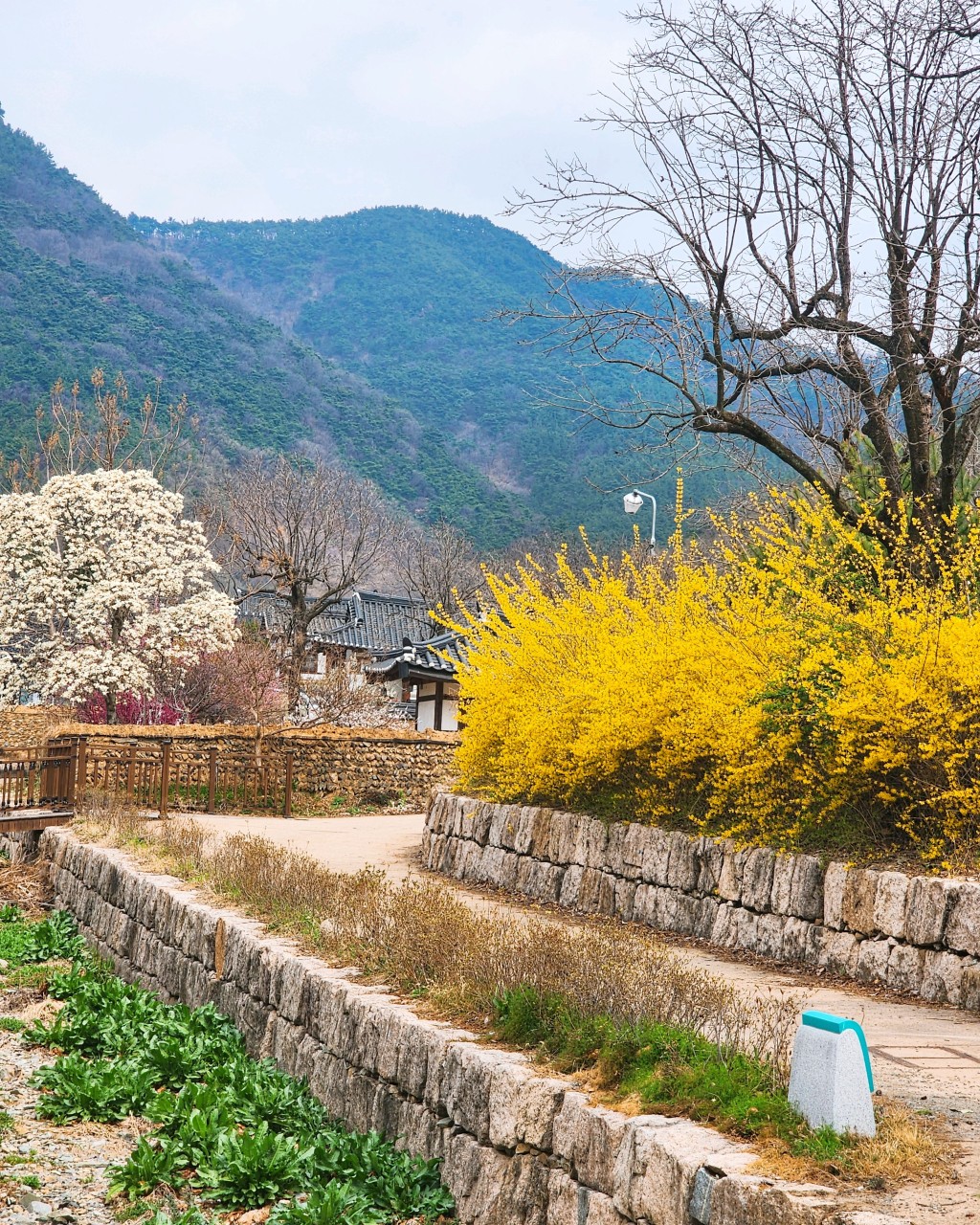 - 봄: 돌담길을 따라 진달래, 매화, 개나리가 피어나요.