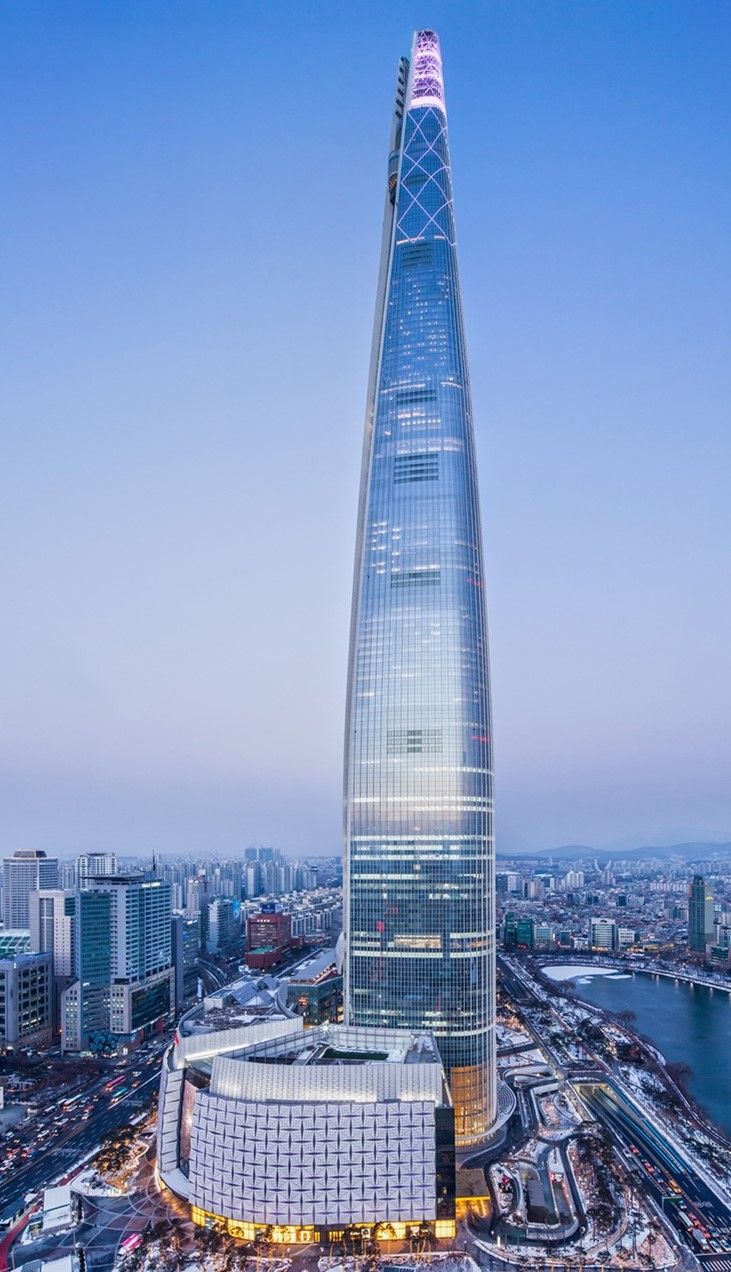 서울 송파구에 위치한 롯데월드타워는 한국의 건축 기술과 디자인의 정수를 보여주는 대표적인 초고층 빌딩입니다. 한국적인 곡선의 미를 닮은 전통 도자기와 붓의 형상을 모티브로 설계된 이 빌딩은 123층, 555미터에 달하는 높이로 세계 5위의 초고층 건물로 평가받고 있습니다. 도심 속에서 하늘을 찌를 듯한 웅장함을 자랑하는 롯데월드타워는 단순한 빌딩을 넘어 쇼핑, 문화, 예술, 숙박, 오피스 기능을 모두 갖춘 수직형 도시입니다.