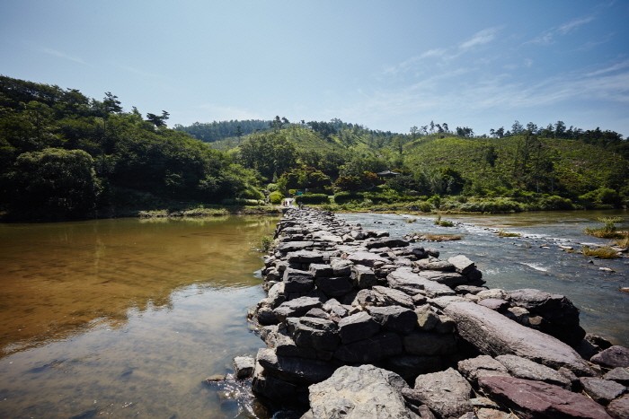 농다리 주변에는 산책로와 정자, 수변 데크 등이 마련되어 있어 풍경 사진 찍기에 아주 좋은 명소입니다. 특히 농다리를 배경으로 찍는 사진은 마치 고전 사극의 한 장면처럼 고풍스럽고 운치가 있습니다.
