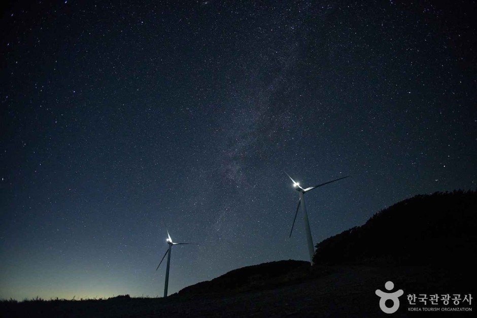 이곳은 계절에 따라 전혀 다른 분위기를 보여주며, 특히 초여름에는 ‘계란프라이꽃’으로 알려진 샤스타데이지가 활짝 펴 온 초원을 하얗게 물들입니다. 여기에 파란 하늘과 바람에 돌아가는 풍력발전기가 어우러져 몽환적인 분위기를 연출합니다.