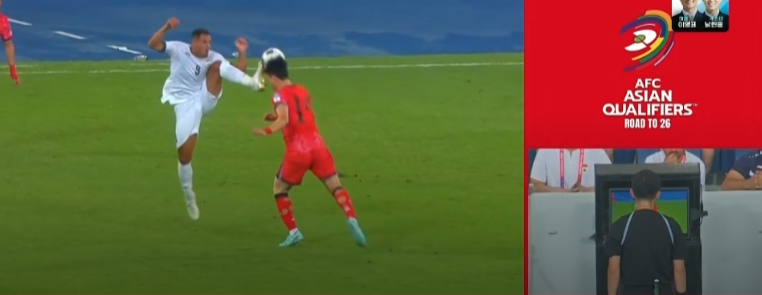 하지만 전반 26분, 이라크 공격수 알리 알하마디가 공중볼 경합 중 조유민의 얼굴을 발바닥으로 가격하며 VAR 판독 후 퇴장당하는 사건이 발생합니다.