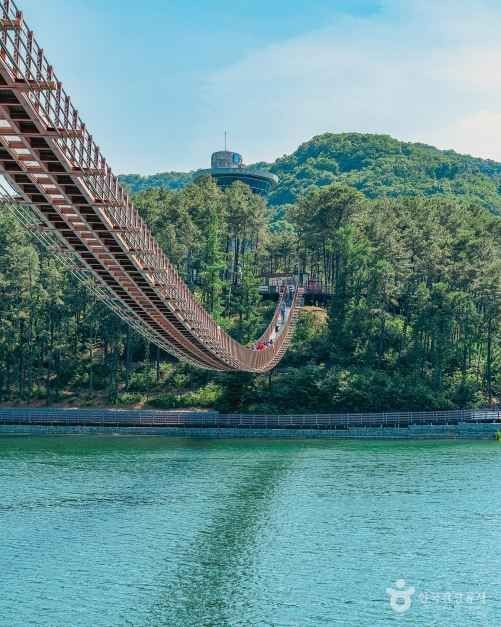 마장호수는 그 자체로도 뛰어난 자연경관을 자랑하는 곳입니다. 호수를 따라 펼쳐진 산세와 나무들, 그리고 그 위를 유유히 흐르는 물결은 도심에서는 경험하기 어려운 평온한 분위기를 선사합니다. 출렁다리를 걸으면서 발 아래 펼쳐지는 호수의 풍경과, 다리가 흔들리는 긴장감이 조화를 이루며 색다른 감성 체험을 제공합니다.