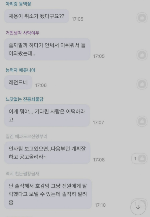 특히 지원자들은 회사 측의 사전 고지 없이 일방적으로 채용을 철회한 점에 대해 기업 윤리의식 부재를 문제 삼고 있습니다. 신뢰를 바탕으로 하는 기업 이미지에 큰 손상을 입혔다는 평가가 지배적입니다.