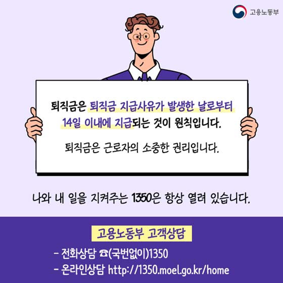 궁금한 점이 있으시다면 언제든지 고용노동부 고객상담센터를 통해 자세한 상담을 받아보실 수 있습니다.