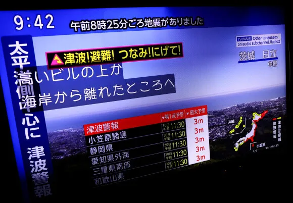 일본 기상청은 지진 발생 직후인 오전 8시 37분, 홋카이도에서 규슈에 이르는 태평양 연안에 쓰나미 주의보를 발령했습니다. 이후 오전 9시 40분, 쓰나미 경보로 상향 조정하며 최대 3m 높이의 쓰나미를 경고했습니다. NHK는 오전 9시 47분 긴급 보도를 통해 주민들에게 높은 곳으로 대피할 것을 촉구했습니다.