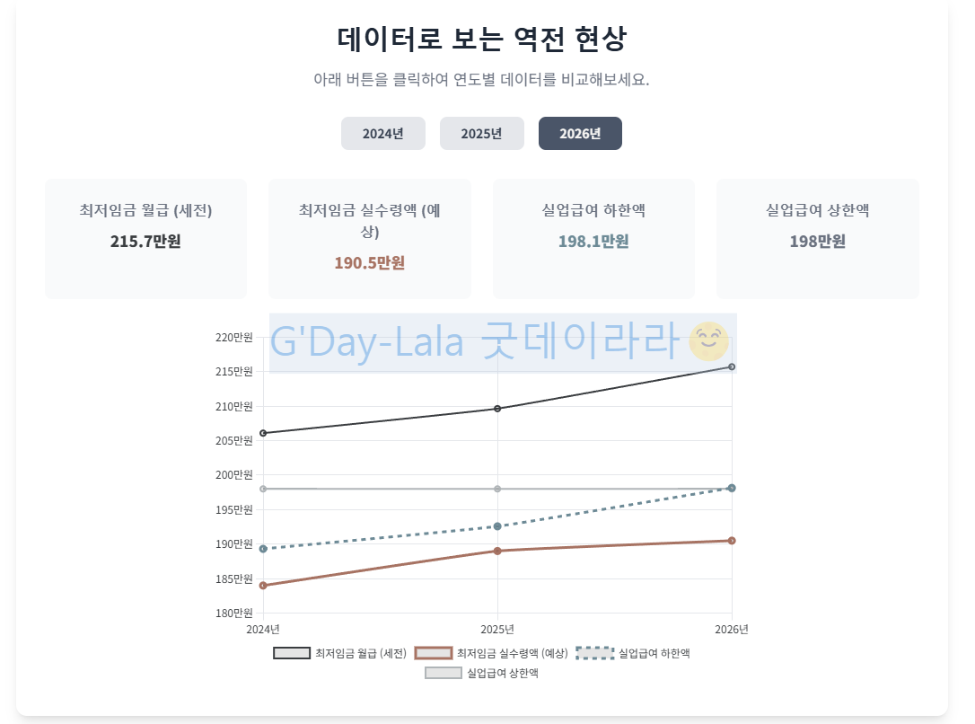 | 월 실수령액 (세후) | 약 184만원 | 약 189만원 | 약 190만원대 초반 (예상) | 4대 보험 및 세금 공제 후 |