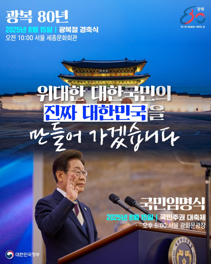 광복 80주년과 국민주권정부 출범을 함께 기념하며, 진정한 '국민주권'의 가치와 소중함을 나누는 뜻깊은 시간이 될 것입니다. 국민 여러분의 많은 관심 부탁드립니다.