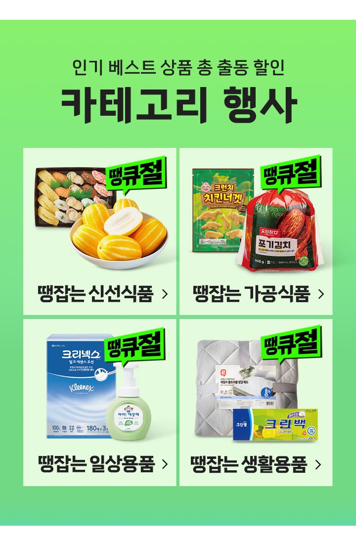 - 생활용품: 물티슈, 샴푸, 세제 등 최대 70% 할인