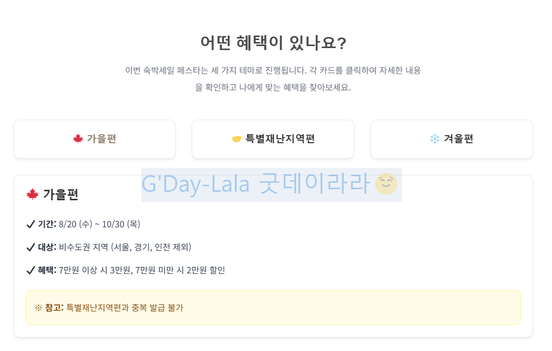 2. 기간별 혜택 완벽 분석: 가을, 특별재난지역, 겨울편 총정리