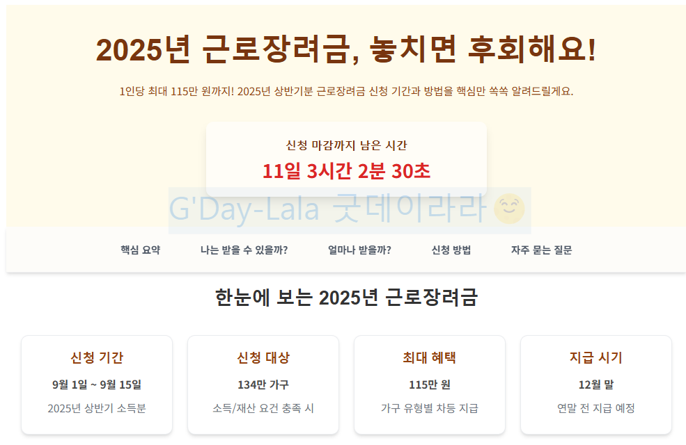 근로장려금: 2025년 상반기 근로장려금 신청이 시작됩니다. 최대 115만원을 받을 수 있는 자격 조건부터 신청 방법, 지급일까지 핵심만 담았습니다. 내가 대상인지 빠르게 확인하고, 마감일 전에