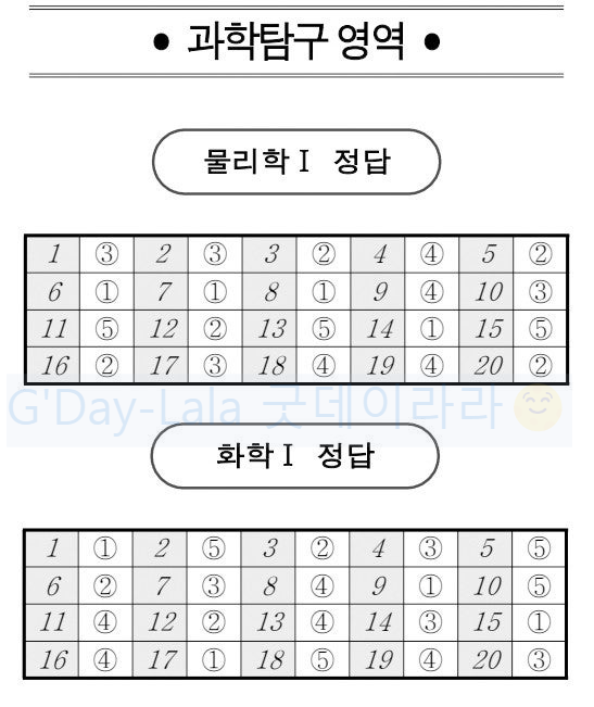물리학 I / 화학 I 정답지