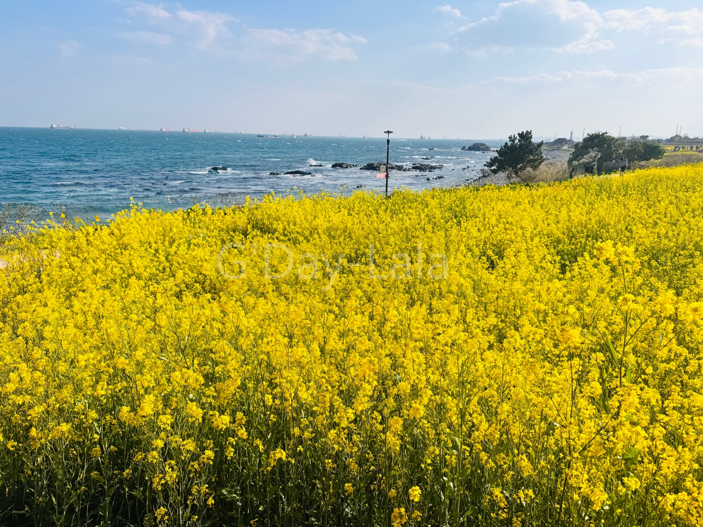 식사를 마친 후, 이렇게 집으로 갈 수는 없겠다 싶어 아름다운 동구 유채꽃밭으로 가족과 함께 다녀왔습니다. 화창한 날씨 속에서 슬도에 펼쳐진 노란 꽃밭은 정말 장관이었어요! 유채꽃의 눈부신 노란색과 바람에 흔들리는 모습은 마치 황금빛 물결 같았습니다. 꽃밭에 들어서자마자 퍼지는 달콤한 향기는 기분을 상쾌하게 해주었어요.