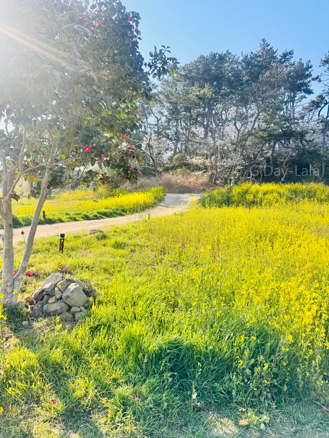 유채꽃밭은 정말 마음을 편안하게 해주는 곳이었습니다. 따뜻한 햇살과 시원한 바람 속에서 자연을 만끽하며 힐링의 시간을 가졌습니다. 꽃밭을 걷는 것만으로도 스트레스가 확 날아가는 기분이었어요.
