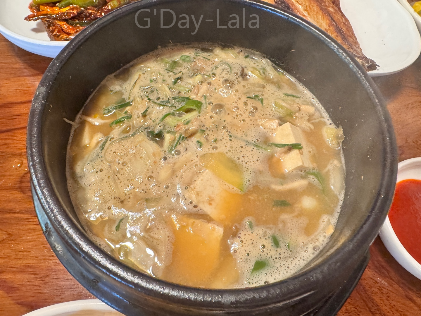 느슨했던 주말이었기에 늦은 점심을 먹게 되었는데, 예상외로 사람이 많았습니다. 울산 율리정에서의 맛있는 식사를 소개해 드릴게요. 한정식 집을 선택했는데, 그 선택이 정말 훌륭했습니다! 식당에 들어서자마자 아늑하고 정갈한 분위기가 마음에 들었고, 전통적인 인테리어가 돋보여 편안하게 식사할 수 있었습니다.